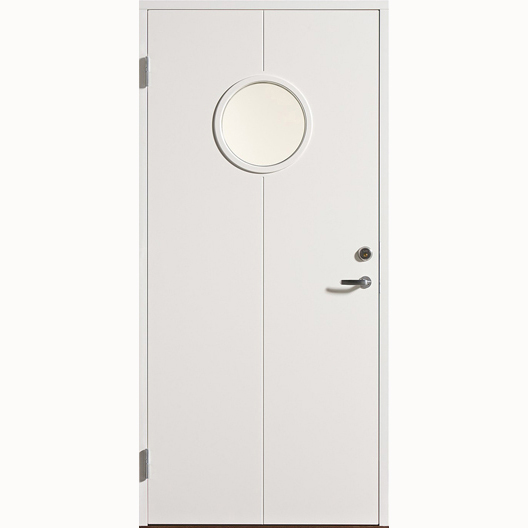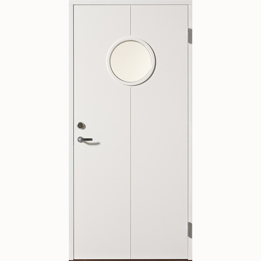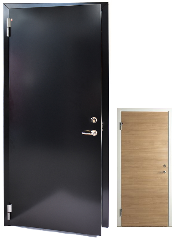 Ståldörr, Ytterdörr för utomhusbruk som klarar att utsättas för väder och vind, Varmförzinkad, Brandklassad EI2 30/EW60 motsvarar EI30,A60,EI60 och ljudklassad RW33db, Dörrblad och karm målas i vald standard kulör eller valfri ncs s, Gjord för inomhusbruk och utomhusbruk.
