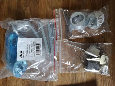 Det ser ut att vara helt rätt detaljer du fått hem till din brevlåda. Påsen med handtag är till ytterdörren. Påsen med låsvred, täckbricka med ovalt hål och skruvar är till ytterdörren. I påsen med de två ovala låscylindrarna finns en cylinder med lång medbringare och en med kort medbringare. Den med lång medbringare är till altandörren och den med kort medbringare är till ytterdörren.