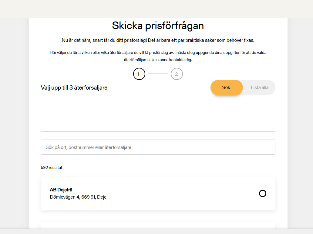 1, Klicka först på skicka prisförfrågan
