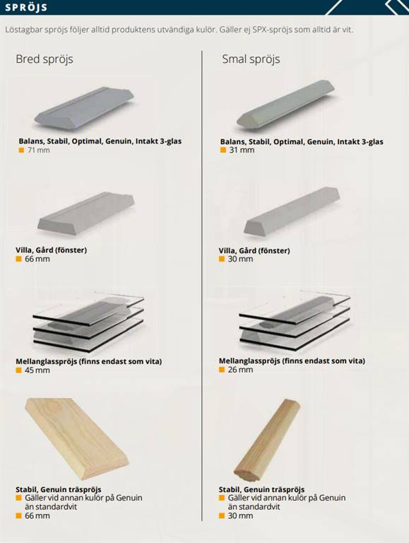 Välj typ av spröjs: Spröjs Fast post Lös post