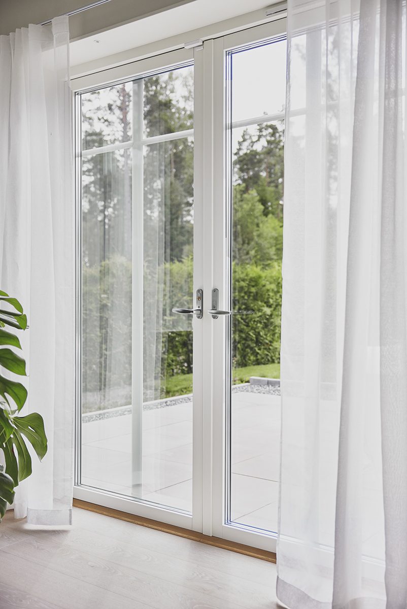 Standard utförande Glas: 3-glas isoler le+argon U-värde 1,2Handtag enkeldörr: in och utvändigt i mattkromHandtag pardörr: in och utvändigt på gångdörr, endast insida på passiv dörrLås: Vred insida och täckbricka utsidaKulör insida: Vit NCS S 0502-YKulör utsida: Vit Ral 9010 glans 30Beslag enkeldörr: Säkerhetsspanjolett med broms & fallkolvBeslag pardörr: Handtagsmanövrerad säkerhetsspanjolett med fallkolv och broms på gångdörr. Handtagsmanövrerad spanjolett med kantreglar och broms på passivt dörrblad. Karmhylsa Adjufix förmonterad. Skruv ingår ej