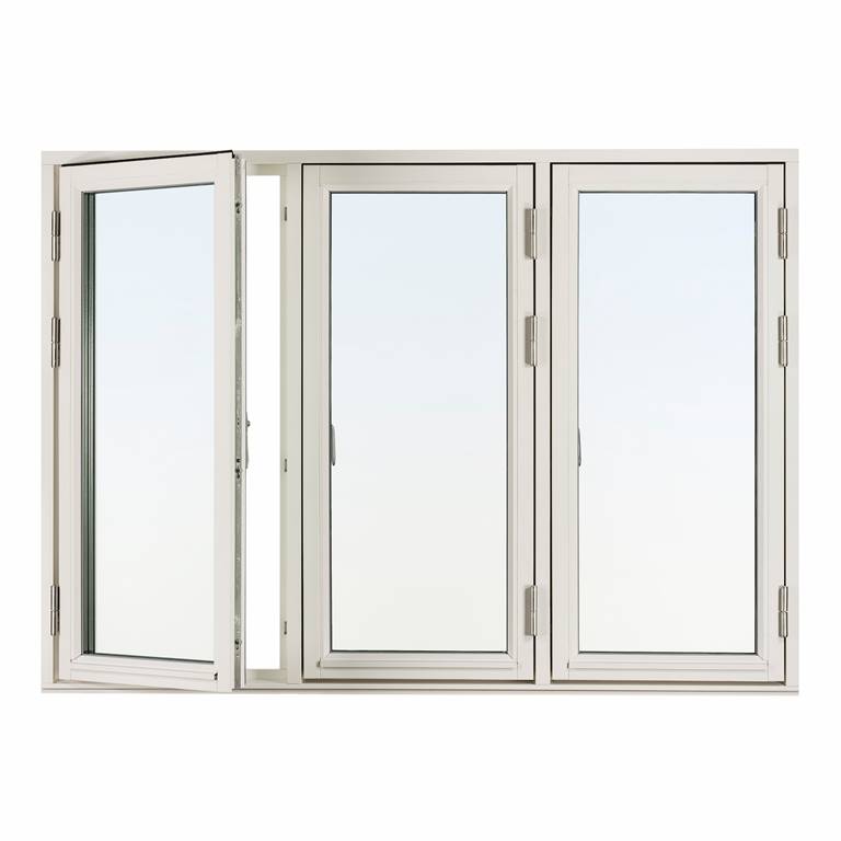 Standard Utförande: Glas: 3-glas isolerruta LE+Argon U-värde 1,2 Handtag: Mattkrom Beslag Sidohängt: Spanjolett med FönsterbromsKulör insida: Vit NCS S 0502-YPassande altandörr Linjera öppningsbart fönster