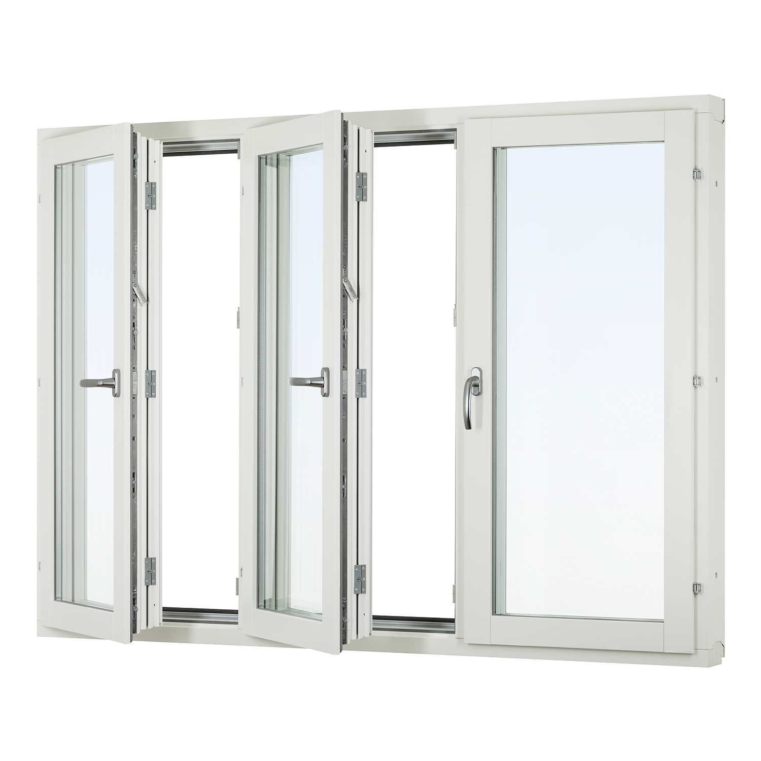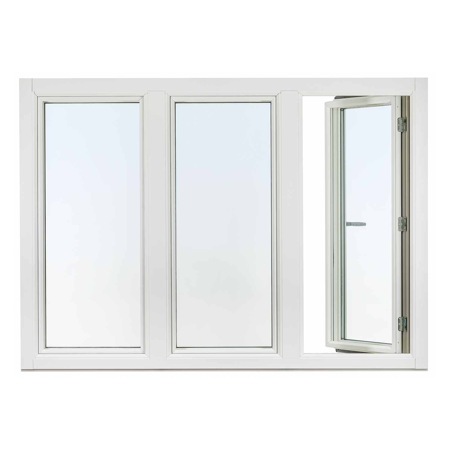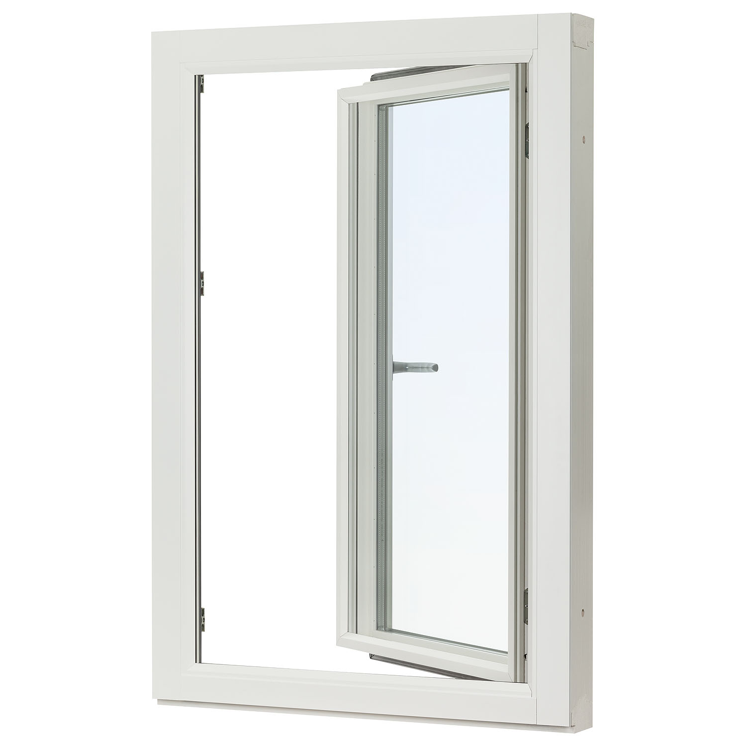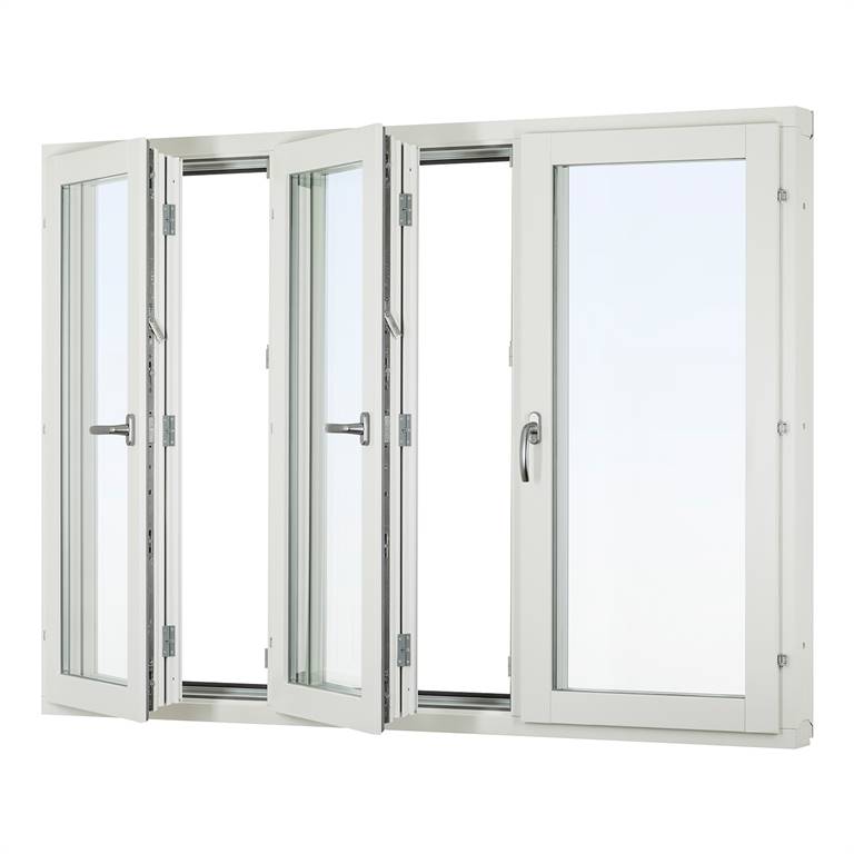 Standard utförande:Glas: 2+1 glas med kopplad yttre ruta, le+argon U-värde 1,1Handtag: Med integrerad barnspärr/mattkromBeslag sidohängt: Spanjolett utan bromsKulör invändigt: Vit NCS S 0502-Y.Kulör utvändigt alu: Vit Ral 9010 glans 30.Passande altandörr linjera öppningsbar
